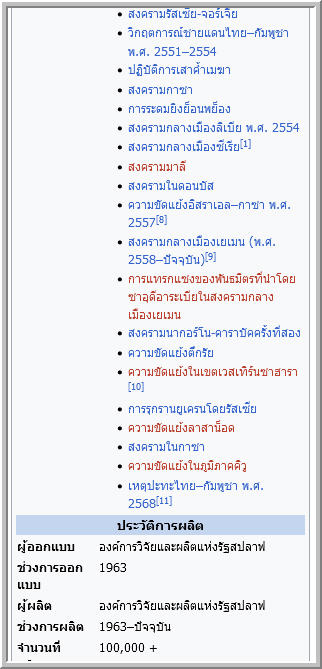 การใช้งาน: ใช้ในงานฝึกยิง-สาธิตและเคลื่อนกำลังระหว่างการเผชิญสถานการณ์ชายแดน